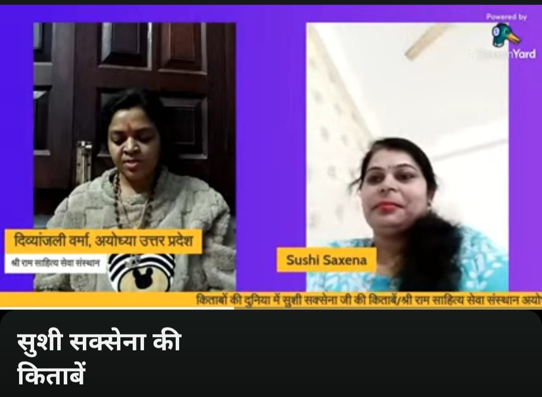 अयोध्या। 12 नवंबर बीती रात्रि 9 बजे किताबों की दुनिया में सुशी सक्सेना की पुस्तकों पर चर्चा कार्यक्रम का सफलता पूर्वक आयोजन संपन्न हुआ। यह कार्यक्रम श्रीराम सेवा साहित्य संस्थान…